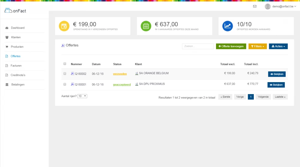 Preparing quotations quickly, orderly and correctly is essential for any business to convince potential customers. With BestInvoicing you can quickly create quotes by looking up existing products and prices in your personal product list and supplementing with specific information per prospect. When you later receive similar requests, you can make a copy of this quotation with 1 click and adjust the specific information.